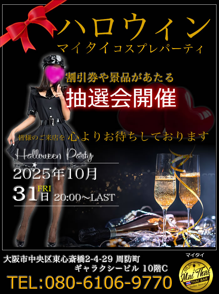 不定期ではございますが、ミナミのタイバー「Mai Thai」では、皆様に喜んでいただけるイベントを開催しております。